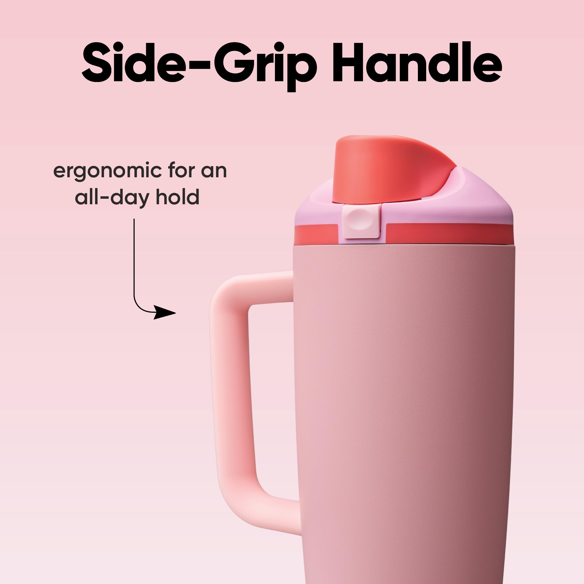 - 40-ounce insulated stainless-steel tumbler with FreeSip spout and push-button lid: For serious hydration; durable, unique design and patented spout; convenient push-button lid for easy opening